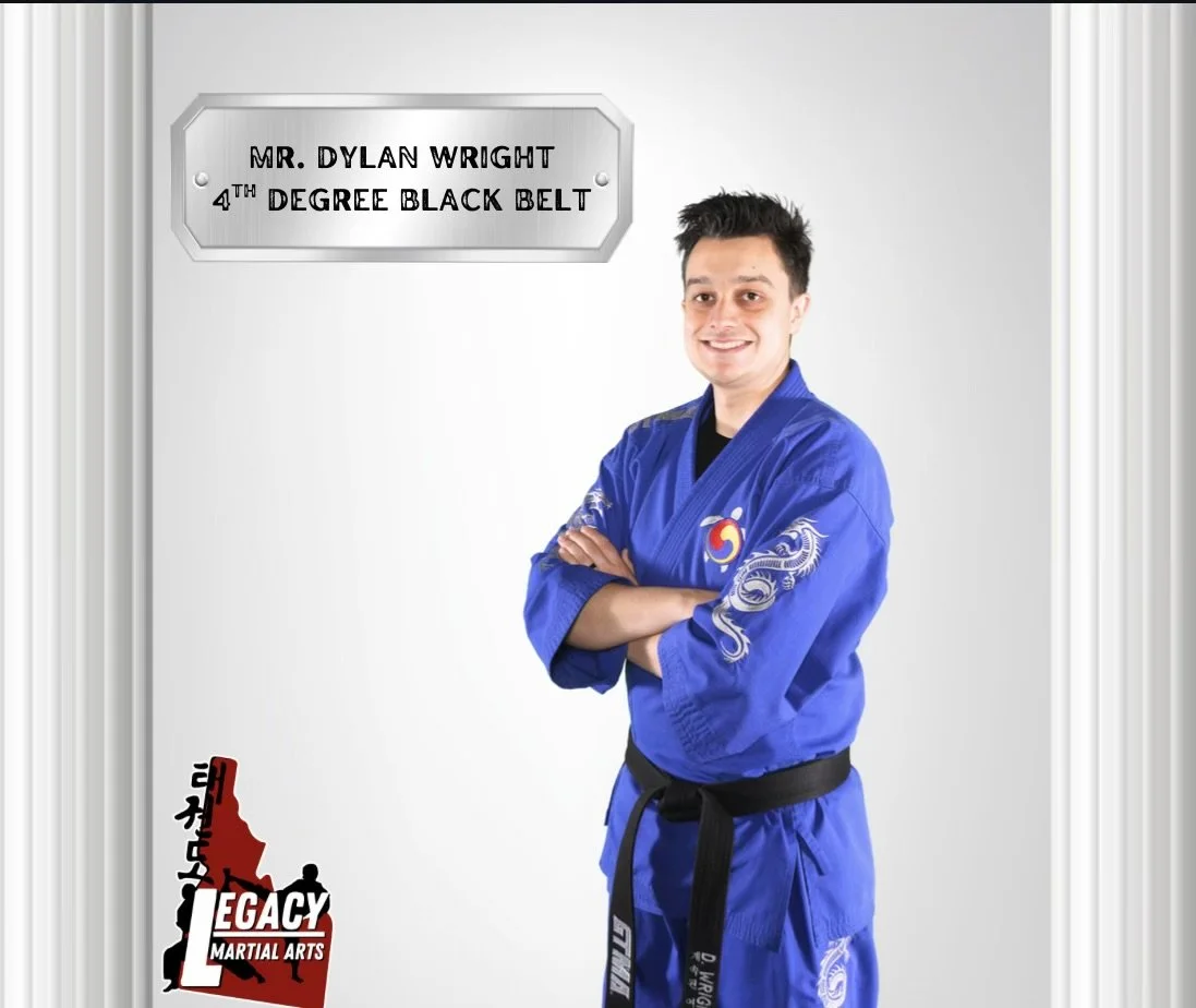Mr. Dylan Wright is a Certified GSHIM Taekwondo Instructor with Legacy Martial Arts. Mr. Wright has a 4th Degree Black Belt and is Chief Instructor at Legacy Martial Arts. Mr. Wright has 17 plus years of experience in taekwondo.